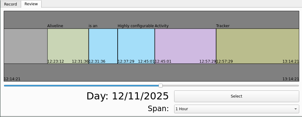 Aliveline is a small app made with Rust + Slint to track daily activity on a timeline.
